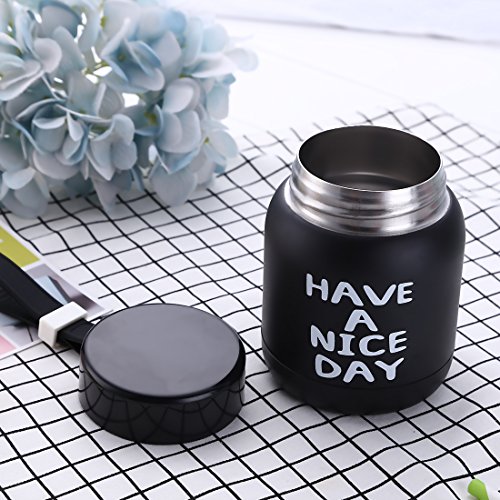 Mr Black, Mini Water Bottle for Kids& Adult, One Cup of Coffee, Vacuum Insulated Bottle, Travel Coffee Cup, Stainless Steel Thumbler with Concealed Carrying Loop, Black, 8.5oz (GOOD LUCK TO YOU)