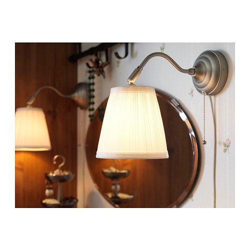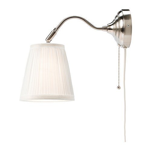 Dimensions: Depth: 15 " Shade diameter: 6 " Cord length: 8 ' 2 " Wall plate/ Arm: Steel, Nickel plated Shade: 100 % polyester