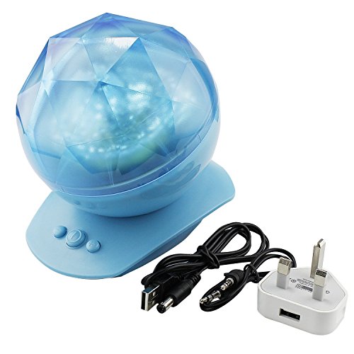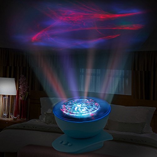 Colored LED Aurora Projector Ocean dynamic sleep Night Light Lamp Ocean Waves Projector Lamp with Music 8Modes projection for bedroom living room children's room bathroom Baby (Blue)