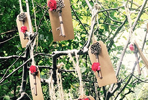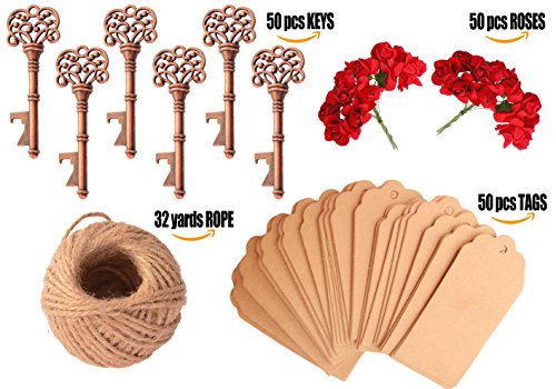 Wedding Decoration, Wedding Favors for Guests Party Favors Rustic Vintage Key Bottle Opener with Escort Card Tag, Roses and Twine 50 Pcs