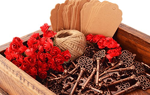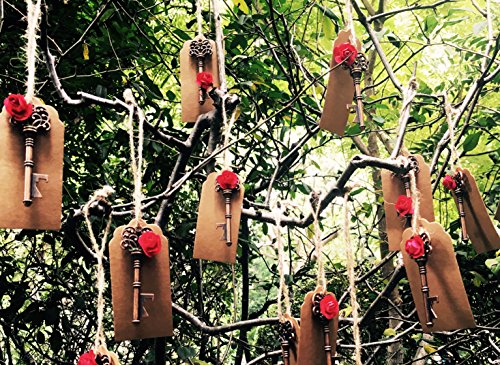 - WEDDING FAVORS AND WEDDING DECORATIONS: The dark copper tones on the key, the pastel brown card, roses and twine accentuate your wedding décor with a vintage or rustic touch. Hang these off a tree for your guests to collect, or spread them out on a tabletop in stunning eye catching arrangements. Mini cute paper flower with 5 layers, which gives the whole set romantic and love favours