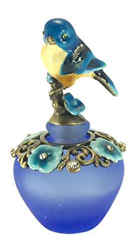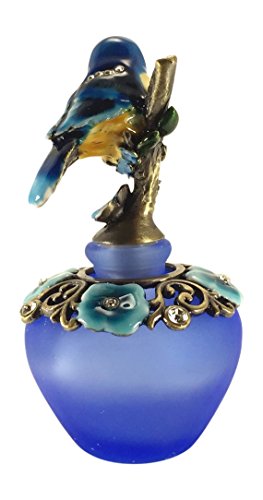 Welforth Blue Bird On Branch Bottle With Flowers And Stones