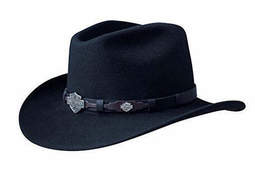 Harley Davidson Men's Leather Overlay And Concho Wool Felt Crushable Cowboy Hat Black Large