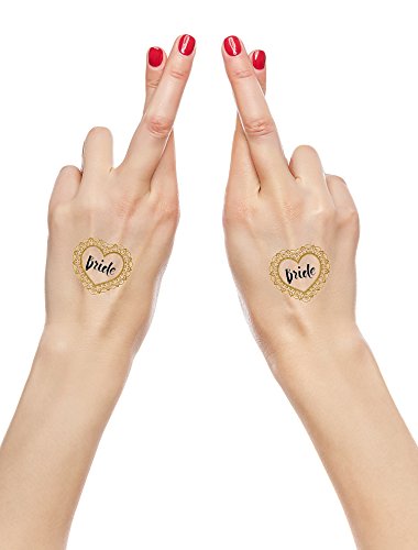 FUN WAY TO START YOUR BACHELORETTE PARTY let guests choose their favorites from this unique selection of eye-catching realistic temporary tattoos mixed set that will last all weekend. Set of 48 best quality tattoos in 9 feminine designs including shimmer gold and silver foil best sizes of 1.5" - 3". Already pre-cut so no need for scissors.
