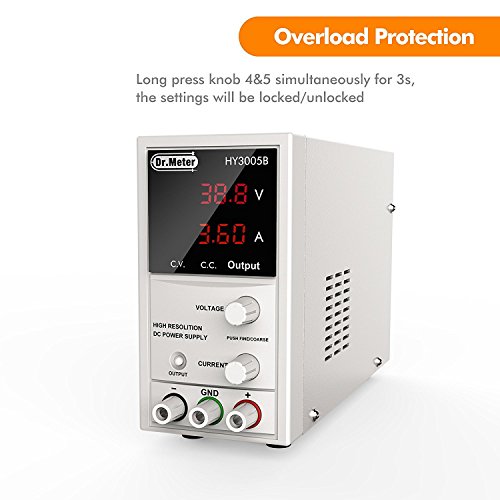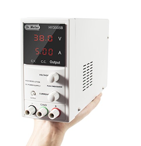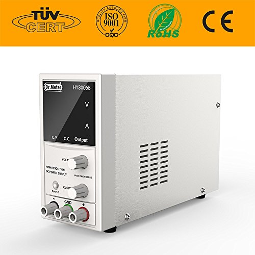Dr.meter DC Power Supply 30V 5A, Small Size Light Weight, Digital LED Display,with Alligator Cable and Power Cord,HY3005B