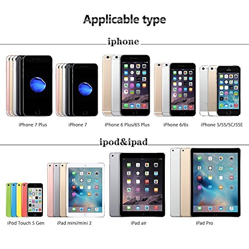 - 【Compatibility】This item enable support for multiple devices, such as for iPhone 7 / iPhone 7 Plus, iPhone 6s / iPhone 6s Plus, iPhone 6 / 6 Plus, Pad Air/mini/Pro, Pod touch(5th Generation)