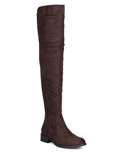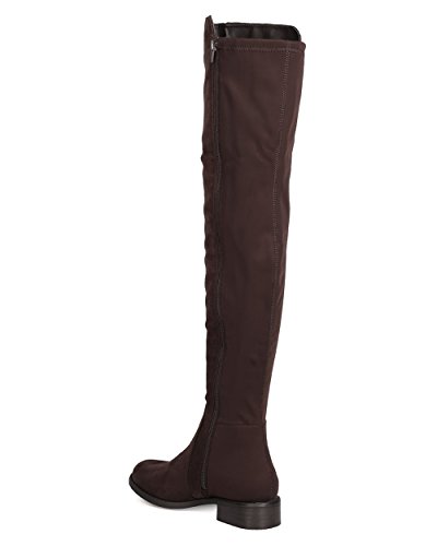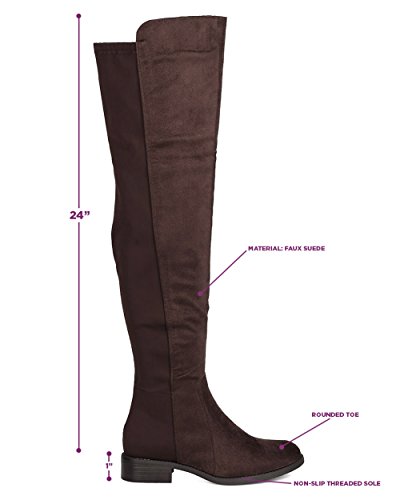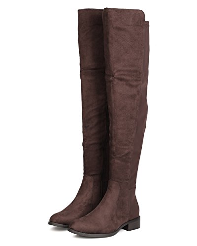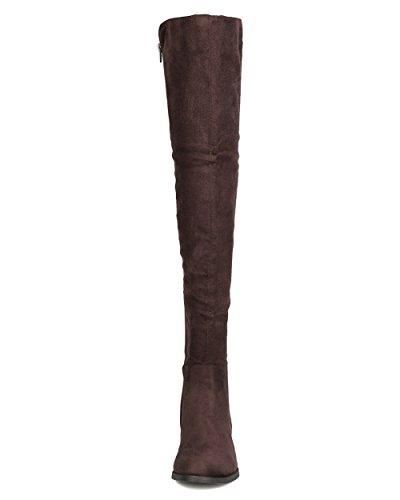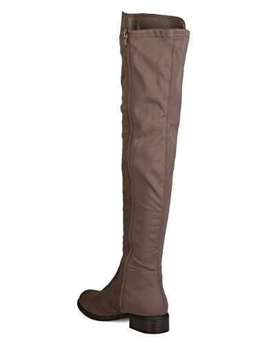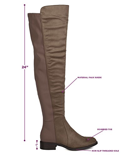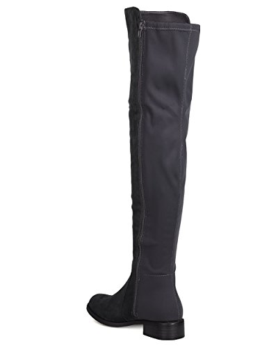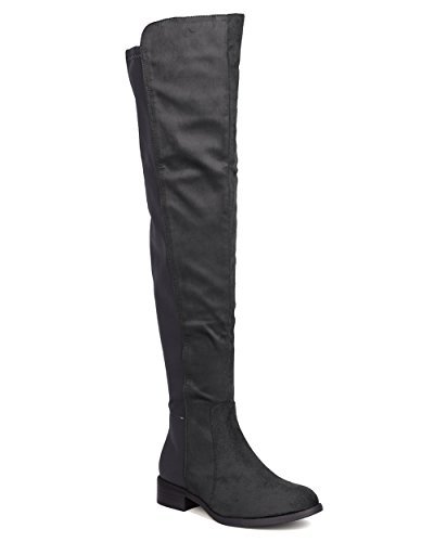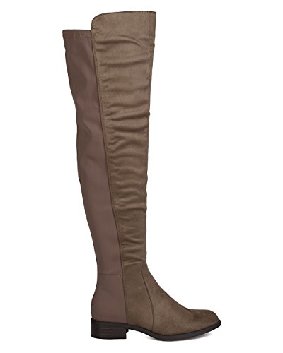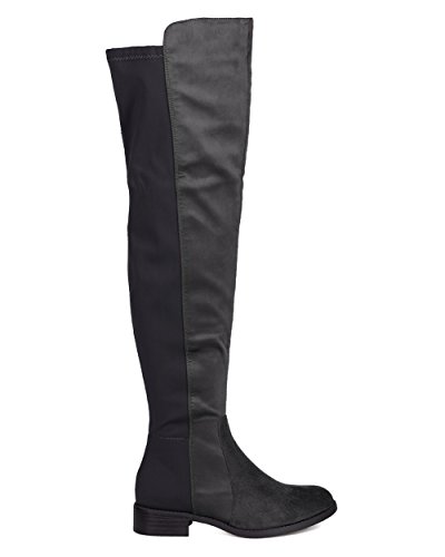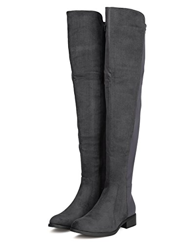 Studio : Indulge Publisher : Indulge Binding : Apparel Product Description These timeless boots are made with a bi-material upper with faux suede and stretchy lycra back panel. Also made with a thigh high rise, low heel, and side zip for easy slip on and off. 0