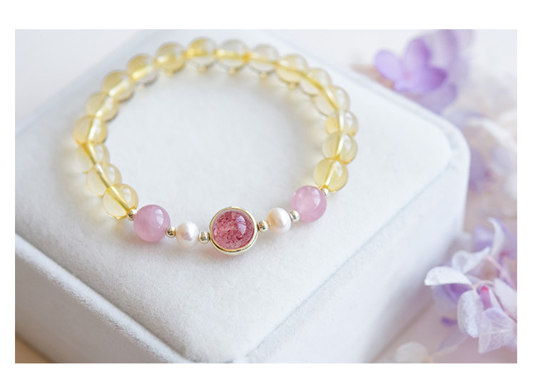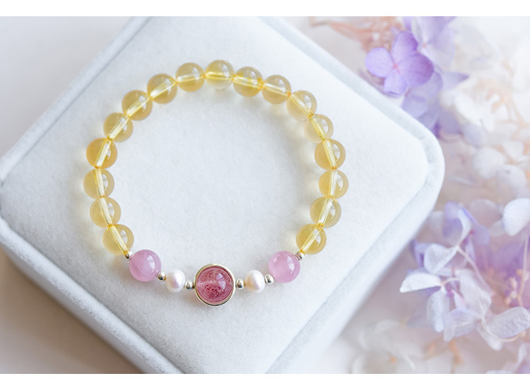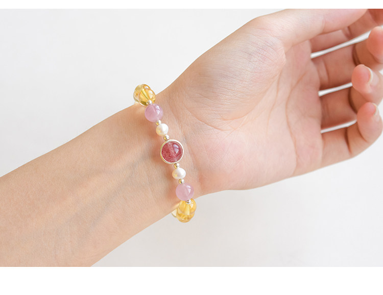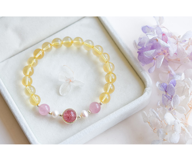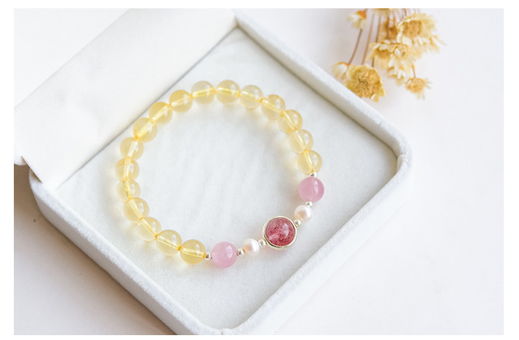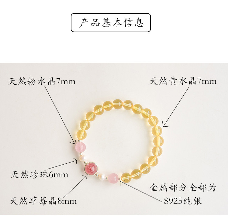 天然黄水晶草莓晶手链女单圈 招财助事业手串生日礼物