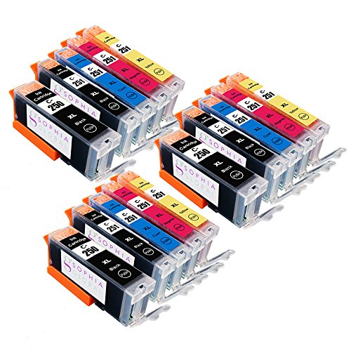 Sophia Global High Yield Compatible Ink Cartridge Replacement for Canon PGI-250XL CLI-251XL (Pack of 15: 3 PGI-250XL Large Black, 3 CLI-251XL Small Black, 3 Cyan, 3 Magenta, 3 Yellow)