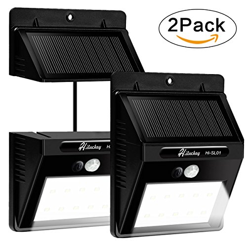 Solar Motion Sensor Lights Outdoor Hiluckey Waterproof Solar Powered Security LEDs Wall Lights Separable Light Body Design with 8ft Connection Cord for Garden, Patio, Driveway, Deck, Stair (2 Pack)