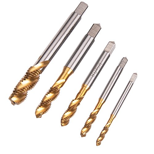 Drill Warehouse 5 Pcs M3 M4 M5 M6 M8 Titanium Coated HSS Spiral Flute Metric Taps Set