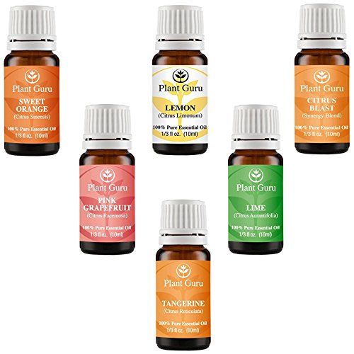 -. Feature : Citrus Set Includes 6 - Plant Guru 10ml. Bottles. Set Includes Sweet Orange, Lime, Pink Grapefruit, Lemon, Tangerine and Citrus Blast Synergy Blend / HIGHEST SUPERIOR QUALITY ESSENTIAL OILS - STRICT QUALITY CONTROL !!! / ALL OUR ESSENTIAL OILS ARE 100% PURE & NATURAL THERAPEUTIC GRADE. NO ADDED INGREDIENTS / WE NEVER SACRIFICE QUALITY FOR P.R.ICE. "ABSOLUTELY NO" SYNTHETICS, CHEMICALS, CARRIER or BASES ADDED / OVER 140 DIFFERENT 100% PURE NATURAL ESSENTIAL OILS , GIFT SETS AND STATER KIT IN TOP 6, 14, 32, 64