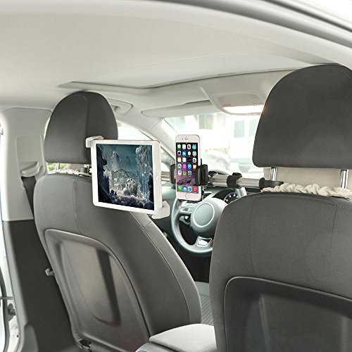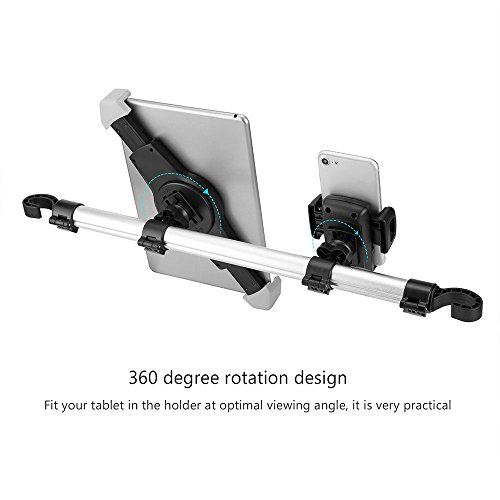 Konesky Car Headrest Mount Holder for Tablet, Car Bracket with 360 Degree Rotation for 7-10.5 Inch Tablet and the Width of 1.6-3.5 Inch Phone