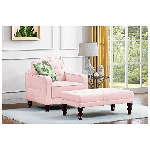 Studio : Novogratz Publisher : Novogratz Product Description The Novogratz Vintage Tufted Ottomanwill add an aura of character to your room unlike any other. The Victorian-style legs combined with velour upholstery and classic diamond tufting work together to provide a sought-out vintage look which will inspire and excite your guests. Pair this ottoman with the Novogratz Vintage Tufted Sofa Sleeper II to transform your living room into a unique space. Size: One Size. ?Ottoman dimensions: 39.5"L x 21.5"W x 15.5"H. ?Box Dimensions: 40.5"L x 23"W x 7.5"H. Weight limit: 200 lbs. Color: ?Pink Velour. 0
