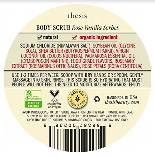 This organic body scrub is packed with skin loving minerals, powerful antioxidants and essential vitamins. Spa quality, fragrant, inspirational and refreshing organic body polish - excellent exfoliator for all skin types, especially dehydrated, normal, dull, dry skin. Organic Soybean oil coupled with Palmarosa essential oil deeply moisturize your skin, delivering antioxidants and nutrients to your skin. Skin feels renewed, soft and pampered. Himalayan salts gently massage skin with every motion. We use genuine, premium Himalayan salt - no fillers, cheap substitutes or fake salts, so you can enjoy a truly moisturizing and polishing organic body scrub. Genuine natural Himalayan salt crystals help remove dead skin cells, dirt and impurities, allowing your new skin to surface. This is a very effective organic body scrub that provides thorough exfoliation and gives your skin wonderful aroma, so it feels renewed, unbelievably soft and delightfully scented. Some people may feel that they will not need to moisturize after using this scrub - that's how rich and hydrating it is. This organic body polish is made with organic, natural, vegan and eco-friendly ingredients. We do not use any skin drying detergents in this organic body scrub formula to make sure it leaves your skin healthy, nourished and supple, not itchy and dehydrated.Feature