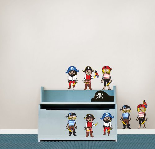 Pirate theme decor for your little swashbuckler. From Captain Hook to Jack Sparrow, pirates are a swoon-worthy obsession, full of imaginative props like swords, eye-patches, parrots and skull emblems. Have fun with your kids bedroom or bathroom decor, our pirate decals are colorful and cute.
