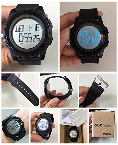 -. Title : Men's Digital Dual Time Ultra Thin Simple Sports MultiFunction Waterproof Big Dial Black Wrist Watch 1206