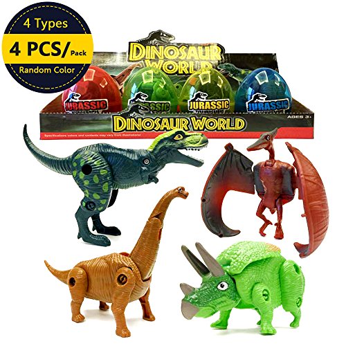 Build Yourself Plastic Dino Figure;Constructing This Will Develop Concentration And Fine Motor Skills For Your Child; The Dino Lover Will Love This Toy; Ideal To Use As A Party Favor, Giveaway, Dinosaur Party, Prehistoric Education Perfect For Easter Egg Hunt, Easter Giveaway, Easter Toy Favor, Easter Eggs, HAPPY EASTER; 4 eggs that have 4 small mini Transforming dinosaur figures inside for your child to play with and enjoy. Package Included: 4 x Transforming Dinosaur Eggs Toy(Random Color) 0