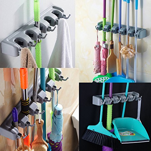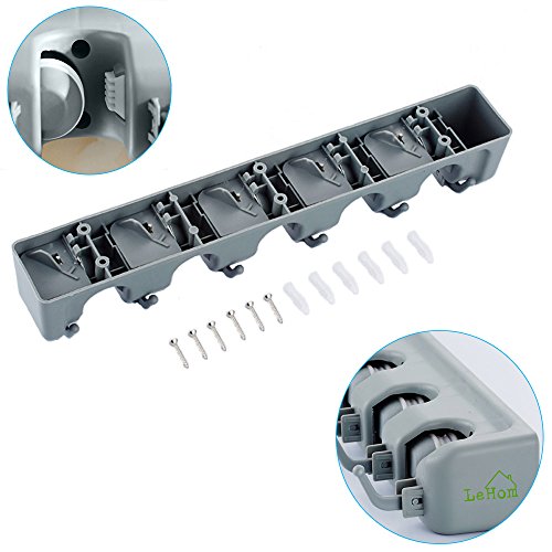-. Title : Mop And Broom Holder Wall Mounted Metal, Space Aluminum Mop Holder Organizer, LeHom 4 Slots 5 Hooks Mop Holder Wall Mounted Garden Tool Storage Tool Rack