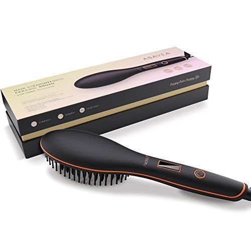 AsaVea Hair Straightener Brush with built in premium anion generator,lighter and smaller, good for using at home or travelling (BLACK)