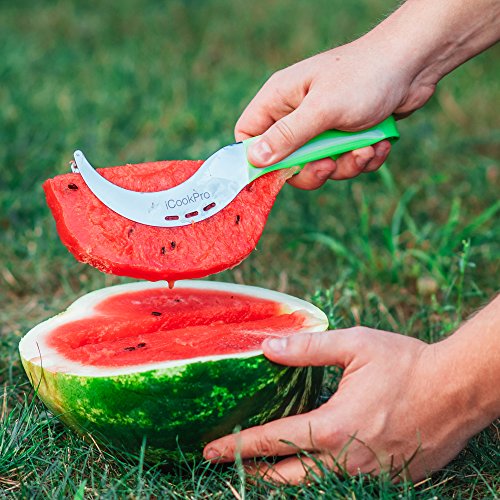 iCookPro Watermelon Slicer & Corer & Server As Seen On TV. Perfect Stainless Steel, Not Sharp, Premium Quality. Cut Your Melon Cantaloupe Fruit Easily With a Kitchen Utility Knife. Shipping from USA