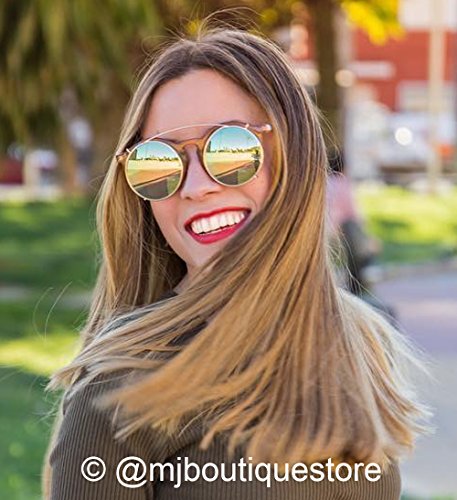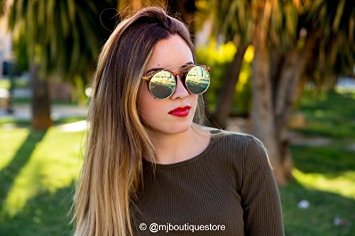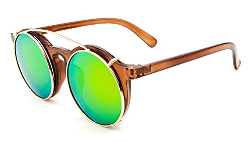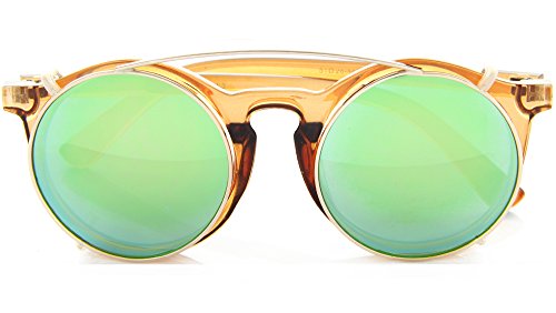 Vintage Round Horned Rim Sunglasses with Clipable Color Mirror Lens