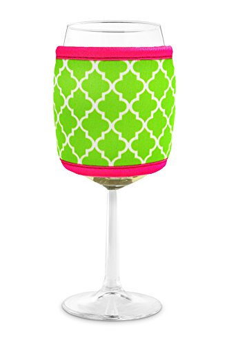 Joe Jacket Wine Glass Insulator, Neoprene Sleeve Drink Holder - Lime Moroccan Tile (many colors avail.)