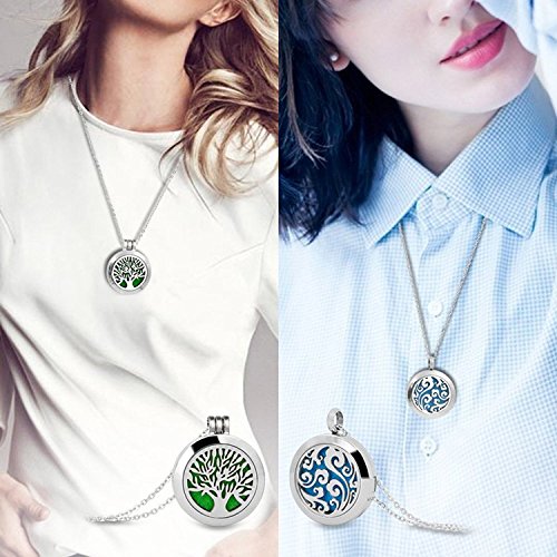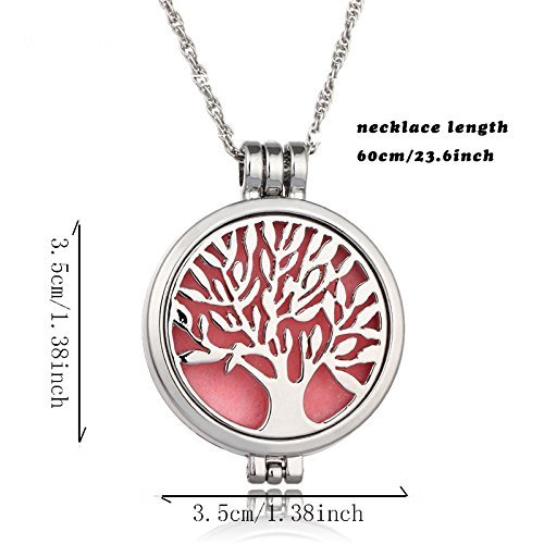Phoenixes Tree of Life, Aromatherapy Essential oil Diffuser Necklace Stainless Steel Locket Pendant with 24 Inches Adjustable Snake Chain, 12 Washable...