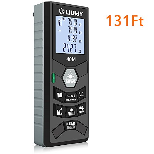 Laser Distance Meter Liumy 131 Ft Rangefinder, LCD Backlit Handheld Measuring Device, Level and Mute Functions for Single-distance Measurement / Continuous Measurement / Area / Pythagorean Modes