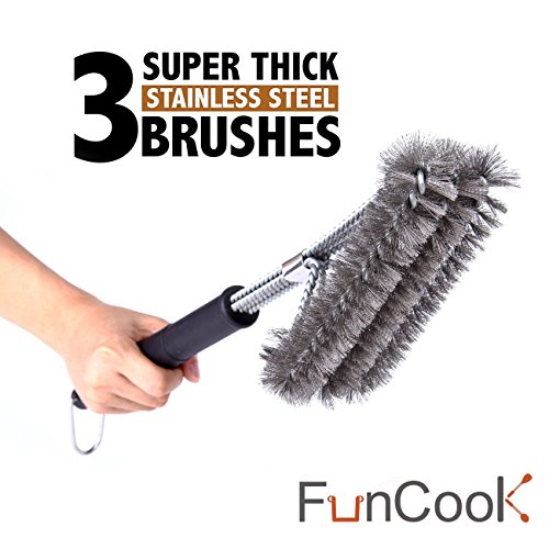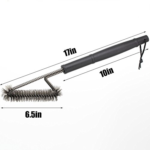 EFFORTLESS CLEANING: With a unique design, this 18" long barbecue brush has three brushes in one, each with its own equivalent stroke.