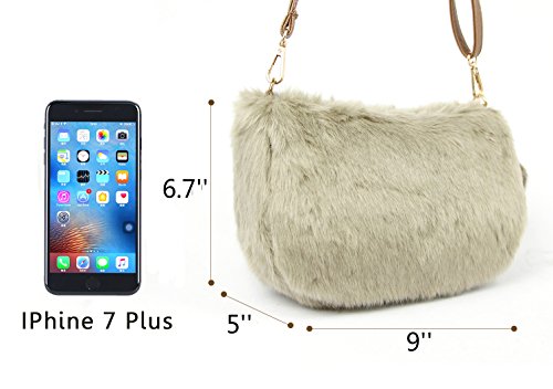 -. Brand : MICOM -. Department : womens -. Feature : Material: faux fur and faux leather; Closure: zipper closure / Size: 9"L x 6.7"H x 5"W; The length of faux leather strap: 55.1'' / Interior: main pocket and a inner zipper pocket; It is roomy space to store phone, wallet, flat cosmetics ect / Lightweight to carry--Plushed Fur crossbody bag is extra light and faux leather straps feel comfortable on your shoulder. / Soft and comforable faux fur design, decoration with an adjustable and detachable strap, it is a perfect bag for the autumn and winter -. PackageQuantity : 1 -. ProductGroup : Shoes -. ProductTypeName : HANDBAG -. Size : Medium -. Title : Fashion Soft Faux Fur Bag with Plush Pendant Shoulder Crossbody Purse for Women