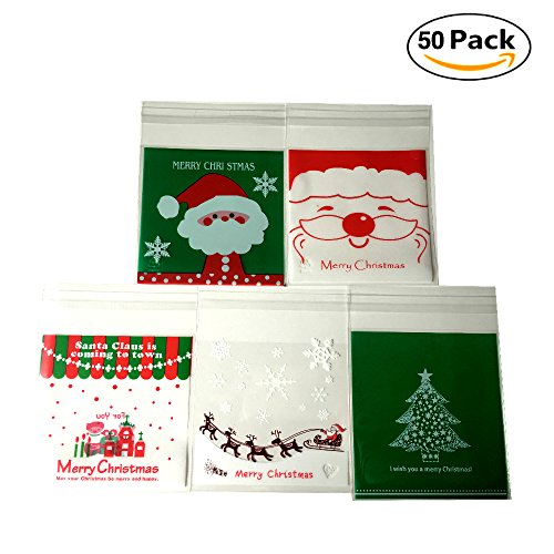 50 Pcs Cookies Packaging Self-adhesive Plastic Biscuit Bag for Christmas Party (50, Series1)