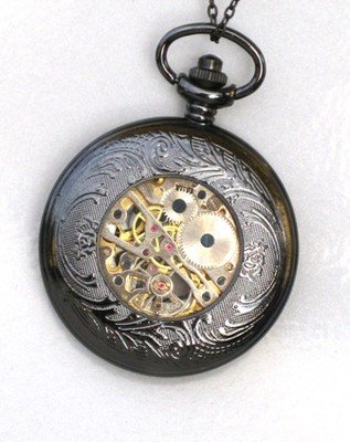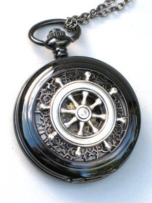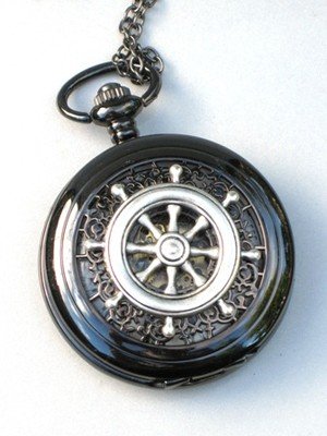 -. Title : Steampunk Nautical SHIPS WHEEL Pocket Watch Mechanical Chain Jet Black