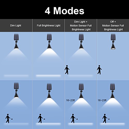 4 Working Modes: Dim Light, Full Brightness Light, Dim Light + Motion Sensor Full Brightness Light, Off + Motion Sensor Full Brightness Light.
