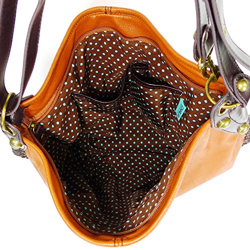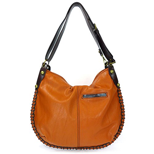 -. Title : Chala Handbag Charming Hobo Crossbody Large Tote Bag Orange FOX Vegan leathe