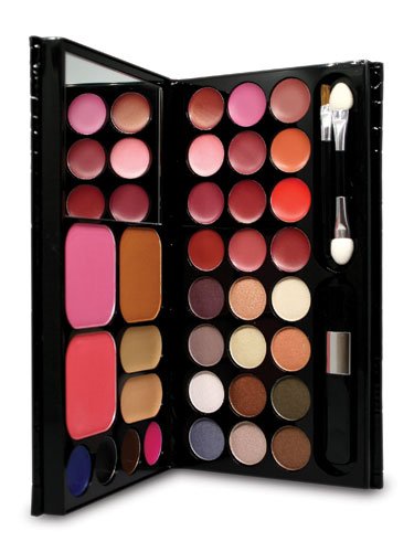 -. Feature : no-spill, no-hassle 33-piece compact / includes concealer, blush, translucent powder, eyeliner, eyeshadow, lip color and lip gloss