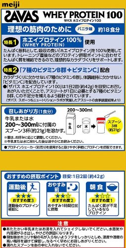 원본상품명: 明治 ザバス ホエイプロテイン100 バニラ味【18食分】 378g