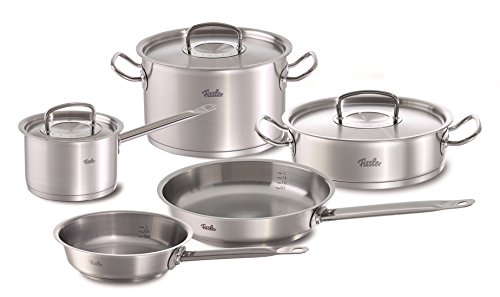 This set consists of a 6.7qt (24cm) Stock Pot with Stainless Steel Lid, a 3.2qt (24cm) Casserole with Stainless Steel Lid, a 2.1qt (16cm) High Sauce Pan with Stainless Steel Lid, an 8" (20cm) Fry Pan and an 11" (28 cm) Fry Pan. The Fissler original profi collection is one of the most awarded cookware lines in the world. Designed, engineered and manufactured in Germany, this modern heirloom collection withstands the test of time. This innovative, contemporary, and professional quality cookware collection is constructed of the highest grade 18/10 stainless steel and is the perfect culinary equipment for cooks who value uncompromising quality, attractive design, and superior functionality. Fissler cookware is extremely strong, durable and made in Germany to the highest culinary standards in the world, providing a lifetime of great cooking results and dining experiences.Feature
