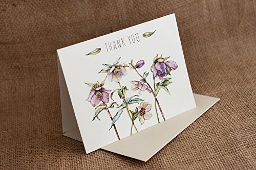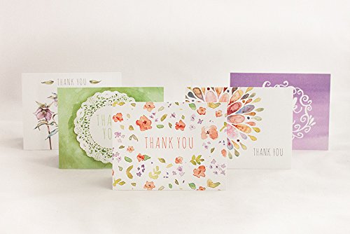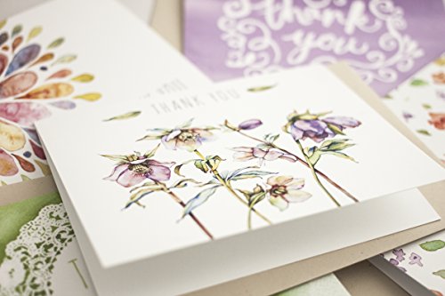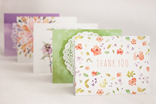 Floral Watercolor Thank You Cards (10 Cards + Sage Green Envelopes) - 5 Unique Designs - By Palmer Street Press