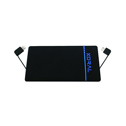 -. Binding : Wireless Phone Accessory -. Brand : Koral -. Color : Black -. EAN : 0856445006066 -. Feature : Rechargeable 5000Mah Lithium polymer battery / Features Integrated mfi Lightning and Micro USB cables with 2.1 a output to provide power for your mobile lifestyle / An Ultra slim design and highly durable rubberized feel, it's easy to carry wherever you go / LED indicators display charge capacity remaining in the power bank / Includes a Koral 12-month limited warranty -. Label : Sedona Wireless - VC -. Manufacturer : Sedona Wireless - VC -. Model : PB5000DC -. MPN : PB5000DC -. PackageQuantity : 1 -. PartNumber : PB5000DC -. ProductGroup : Wireless -. ProductTypeName : WIRELESS_ACCESSORY -. Publisher : Sedona Wireless - VC -. Studio : Sedona Wireless - VC -. Title : Koral 5000mAh Portable Charger with Dual MFi and Micro-USB cable for iPhone, iPad & Samsung Galaxy & More (Black) -. UPC : 856445006066