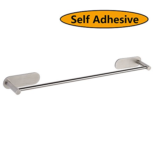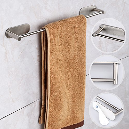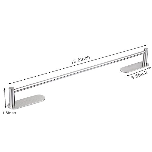 HOMEIDEAS 3M Self Adhesive Towel Bar 15.6-Inch Towel Hanger Bathroom SUS304 Stainless Steel Towel Rack Bath Wall Shelf Hanging Towel Stick On Sticky Hanger,Brushed Finish