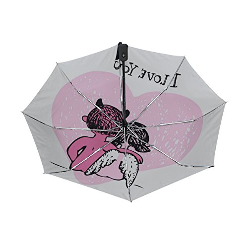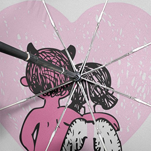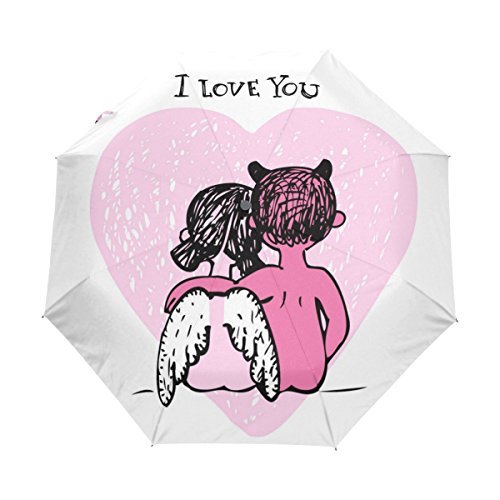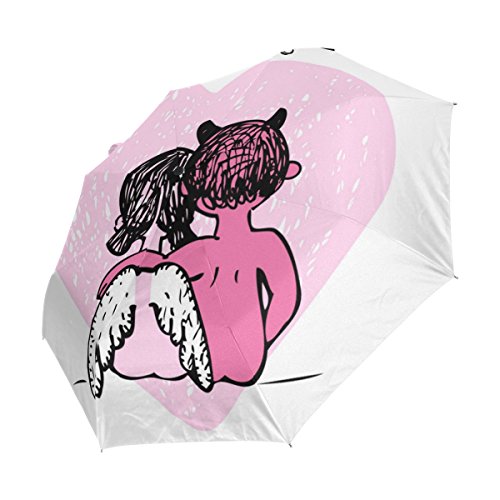 materials: made of 100% polyester pongee waterproof fabric. Weight: it is lightweight, 393g. Single-sided printing. Style: automatic open and close umbrella; foldable mini travel umbrella. Can be used on rainy and snowy day. Suitable for boys, girls, women and man. Feature: Light weight, small, portable. This Valentine Couple Devil And Angel Romantic Love Pink Heart On White folding umbrella is also a perfect Christmas gift, new year gift, and back to school gift. 0