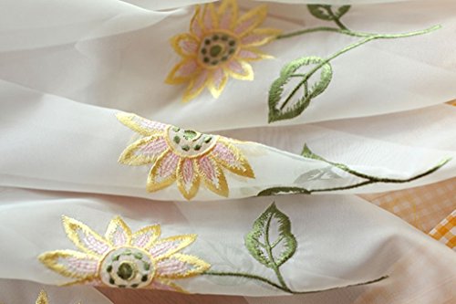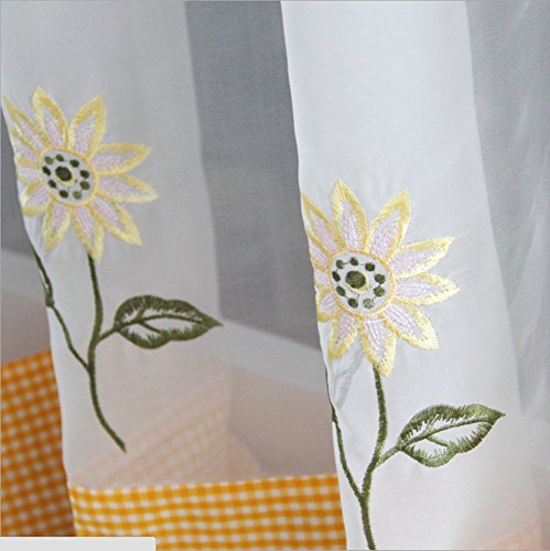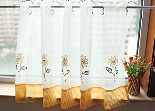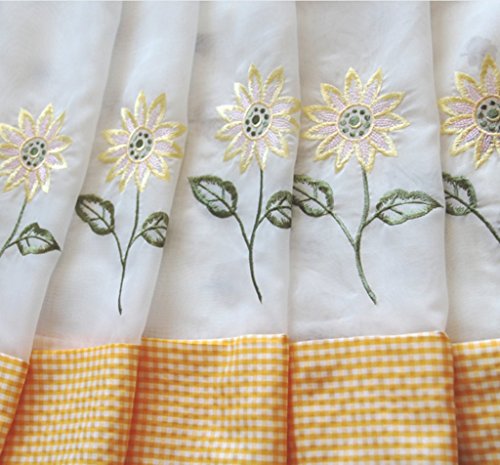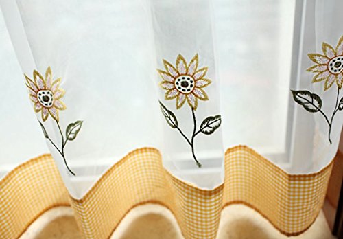 ZHH Pastoral Style Cafe Curtain Embroidery Sunflower Window Valance 17 by 59-Inch, Yellow Bottom