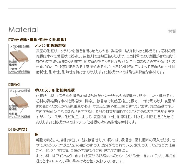 材質:前面-中質繊維板(ポリウレタン塗装)、他-メラミン化粧繊維板