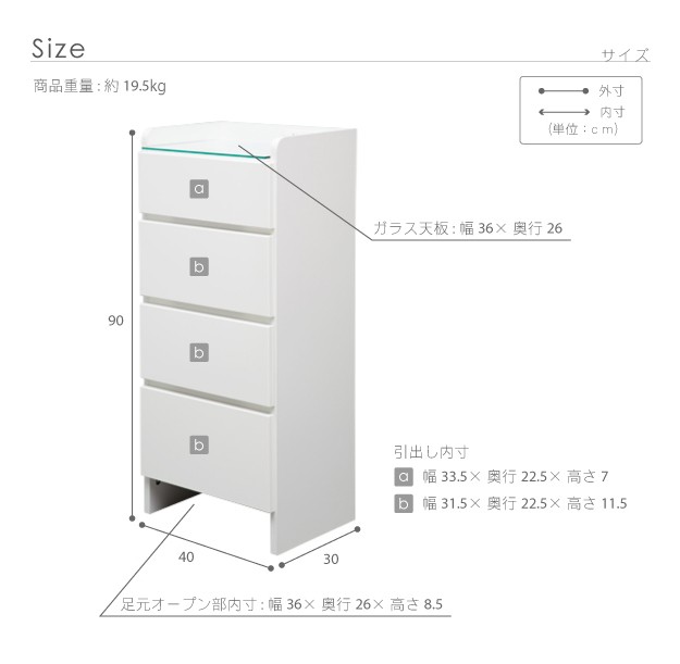 サイズ(cm):幅40x奥行30x高さ90・約19.5kg