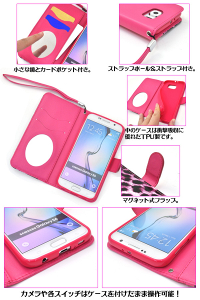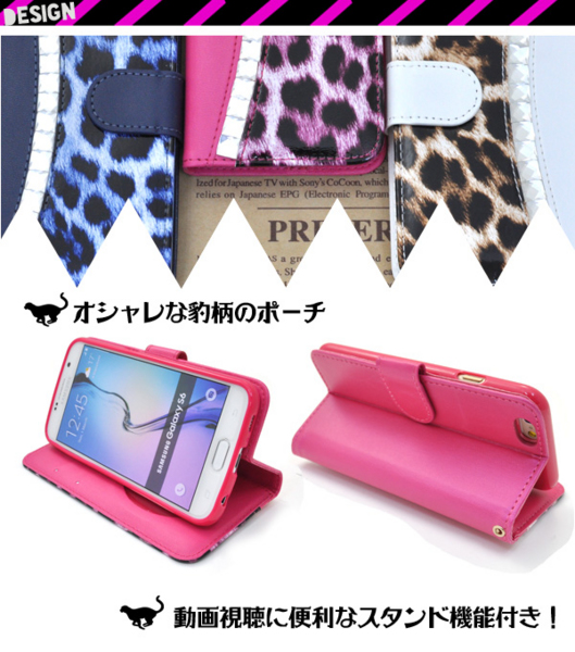 Galaxy S6 SC-05G用の豹柄プリントがオシャレな手帳型ケースです。