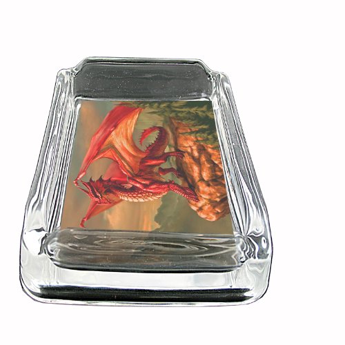 -. Title : Glass Square Ashtray Dragons Design-003