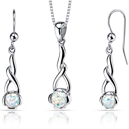 -. Title : Created Opal Helix Pendant Earrings Necklace Sterling Silver 2.00 Carats