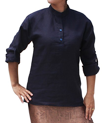 RaanPahMuang Thin Ramy Linen Shirt Professional Collar Button Roll Up Sleeve