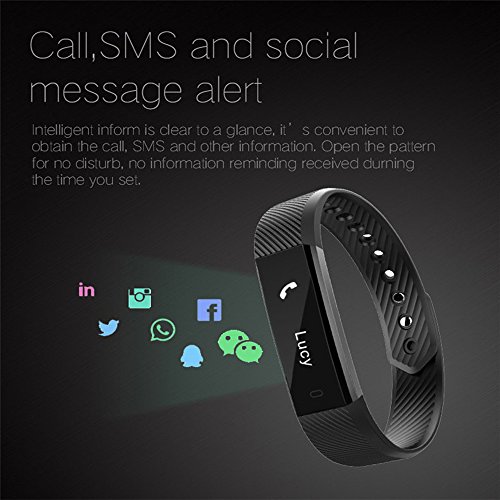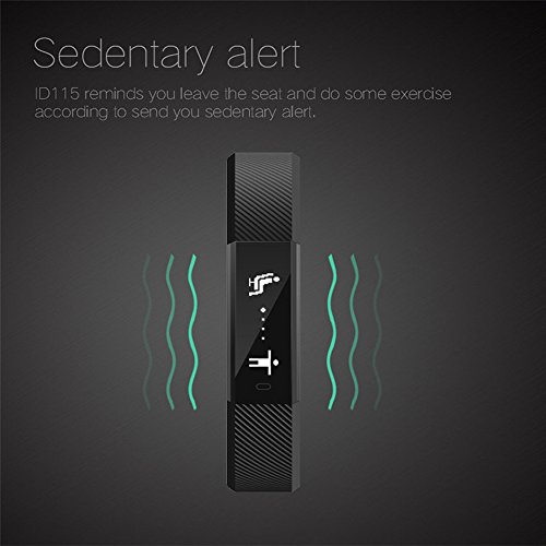 -. Feature : Smart Bracelet ID115 makes the movement a fashion, step, distance, calorie consumption management, sleep management, time display, event reminders (drink water, medication, etc.), call reminder, message reminder, clock Show, sedentary reminders, remote control self-timer, intelligent anti-lost, and other multi-functional, to bring you all-weather care / Wake-up gesture:The screen will light when you turn over your wrist. Remote Camera:You can take photos through the bracelet via remotely control of your smart phone. / Heart Rate Monitor:It can monitor your heart rate to help you do exercise and adjust your training plan scientifically; Sleep Monitor:It will automatically recognize your state and monitor your whole sleep process with analyzing your deep sleep time and light sleep hours. / Calls Reminder:When you have calls, the smart bracelet will vibrate to remind you and display the call name or number; SMS Reminder:When you have SMS or social notice such as Facebook and Twitter, the smart bracelet will vibrate and display the content / Find Phone and Anti-lost:The Phone will vibrate to remind you after starting the find phone function on the bracelet. While the bracelet be far away from the phone, the bracelet will vibrate; Alarm Clock:Don't be afraid that your alarm would wake up others because this silent vibration function just wake you up! (Alarm icon will be displayed on the bracelet after switch it ON in the APP.)